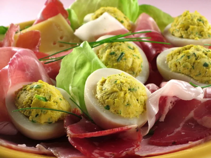 kečap, šunka, sir, šampinjoni, origano, jaja, pršuta, masline