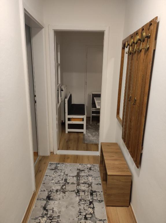 Potpuno opremljena kuhinja uključuje pećnicu, ploče za kuhanje, hladnjak, pribor, kuhalo za vodu i stol za jelo. Iz dnevnog boravka izlazite na balkon i terasu s pogledom na grad i dvorište.